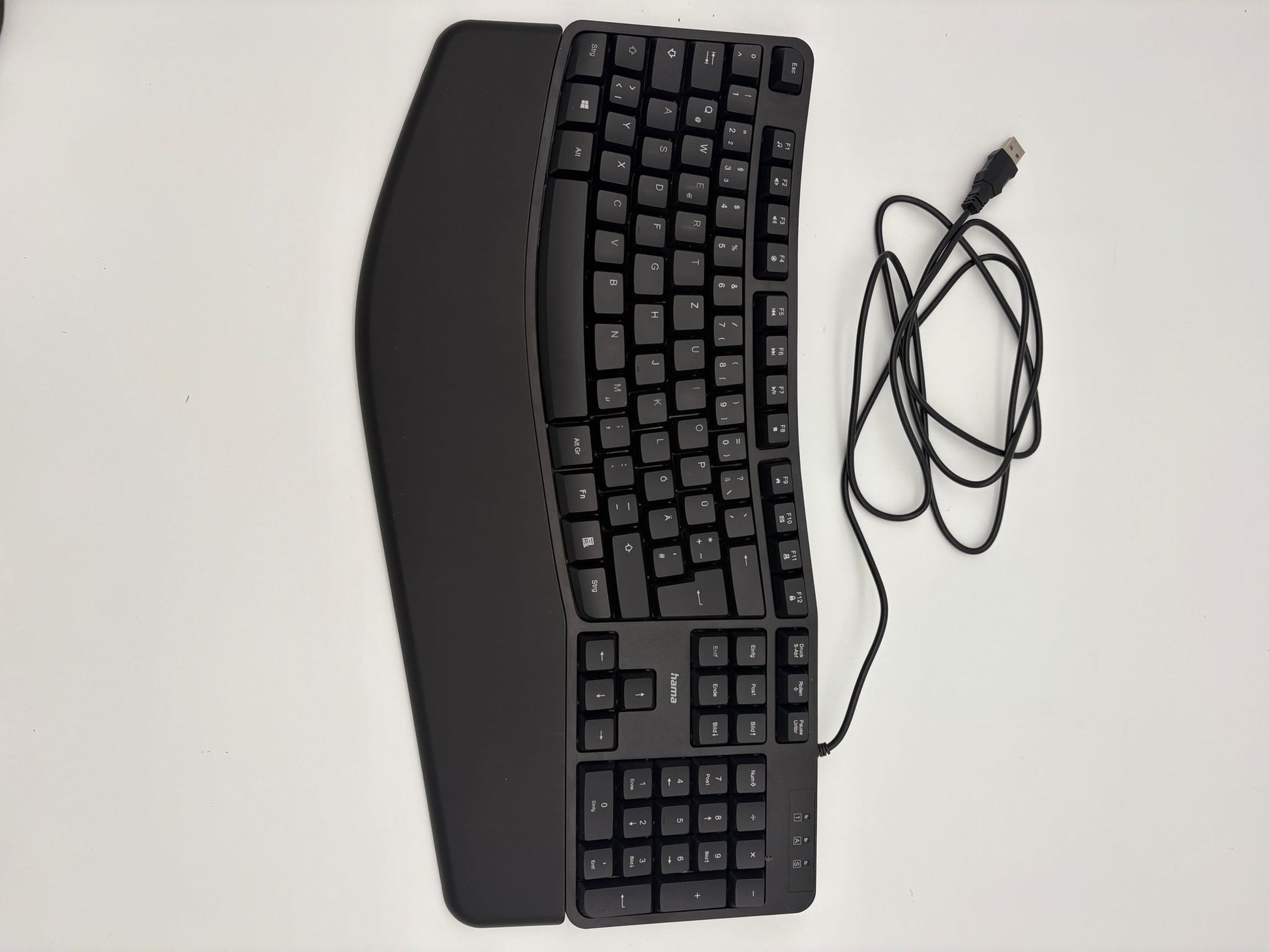 Hama Ergonomische Kabelgebundene Tastatur mit Handballenauflage – Schwarz